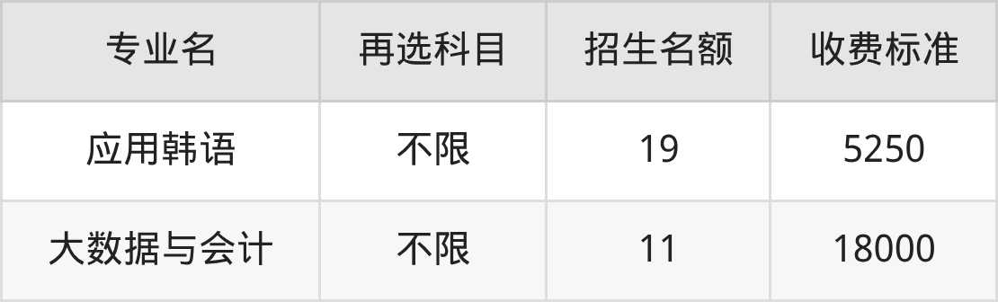 | 专科高职批 | 历史 | 应用韩语 | 19 |