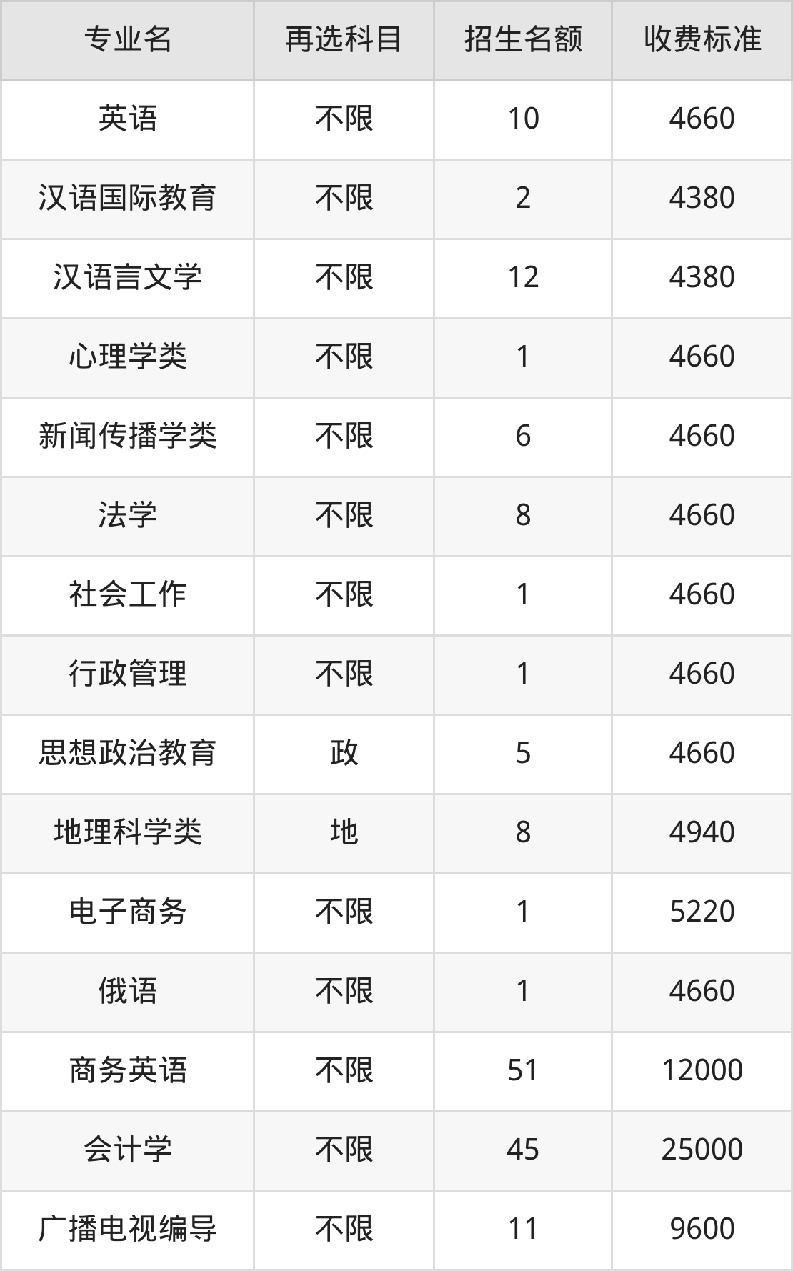 | 本科批 | 历史 | 汉语国际教育 | 2 |