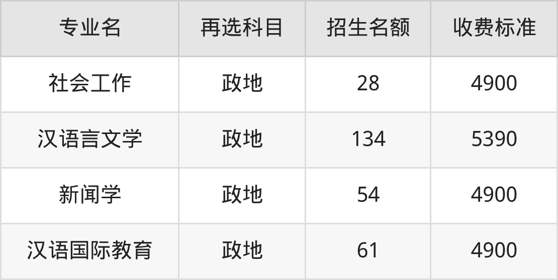 | 本科批 | 历史 | 汉语国际教育 | 61 |
