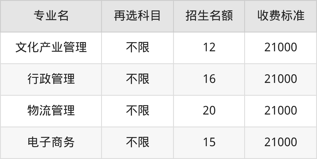 | 本科批 | 物理 | 文化产业管理 | 10 |