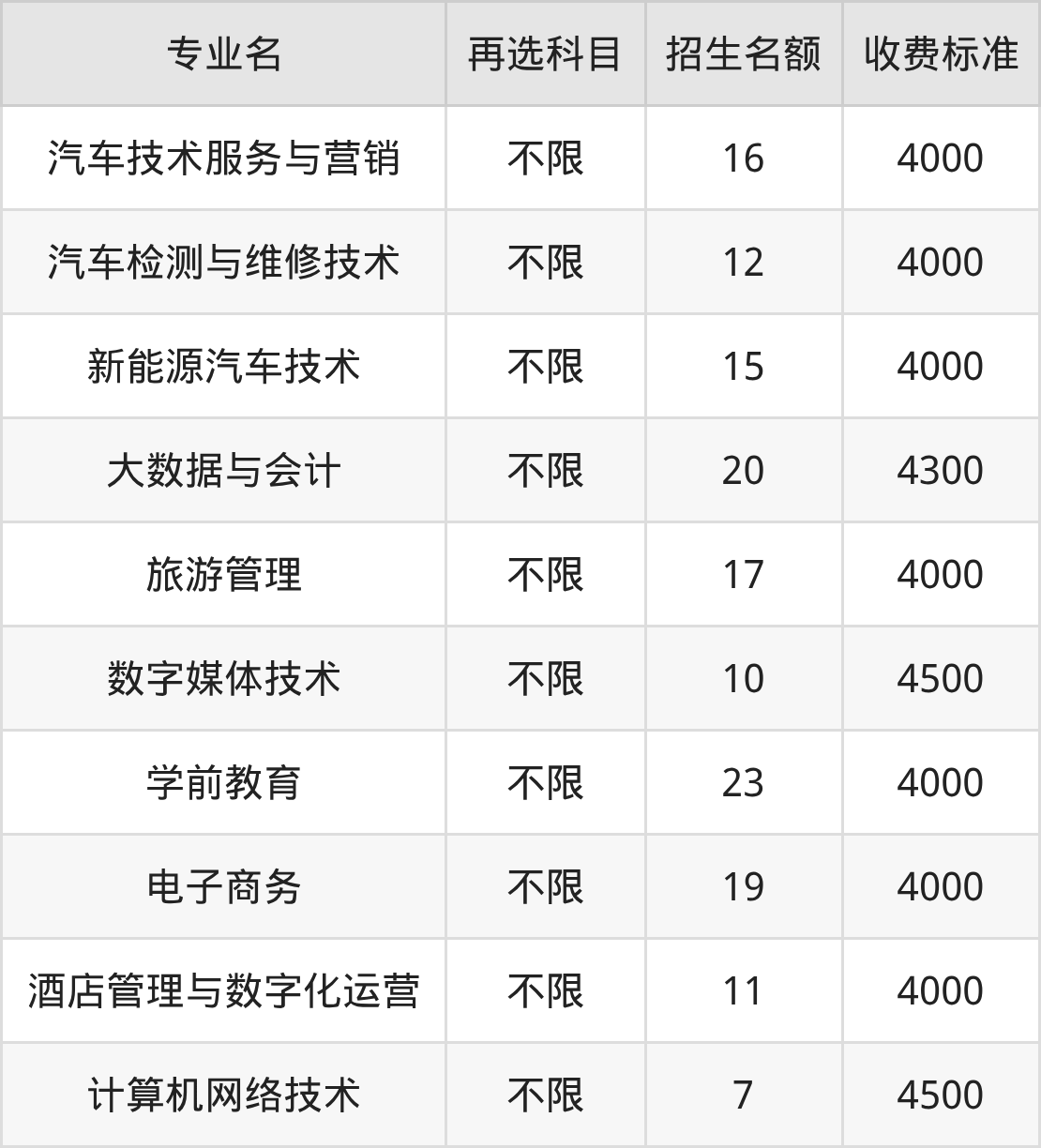 | 高职专科批 | 历史 | 新能源汽车技术 | 15 |