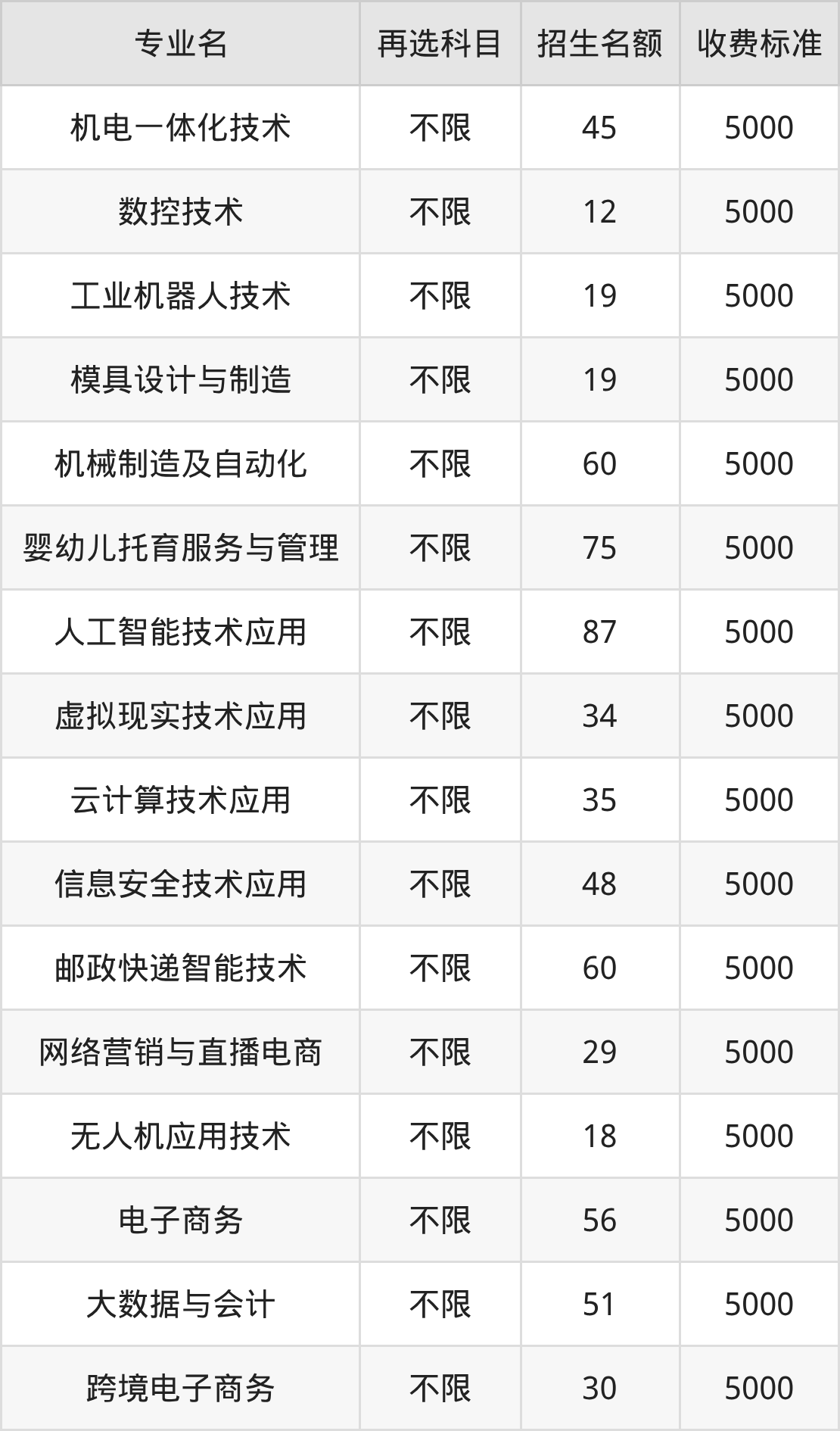 | 高职专科批 | 历史 | 机电一体化技术 | 45 |