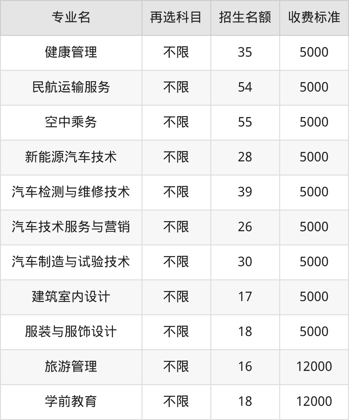 | 高职专科批 | 物理 | 旅游管理 | 12 |