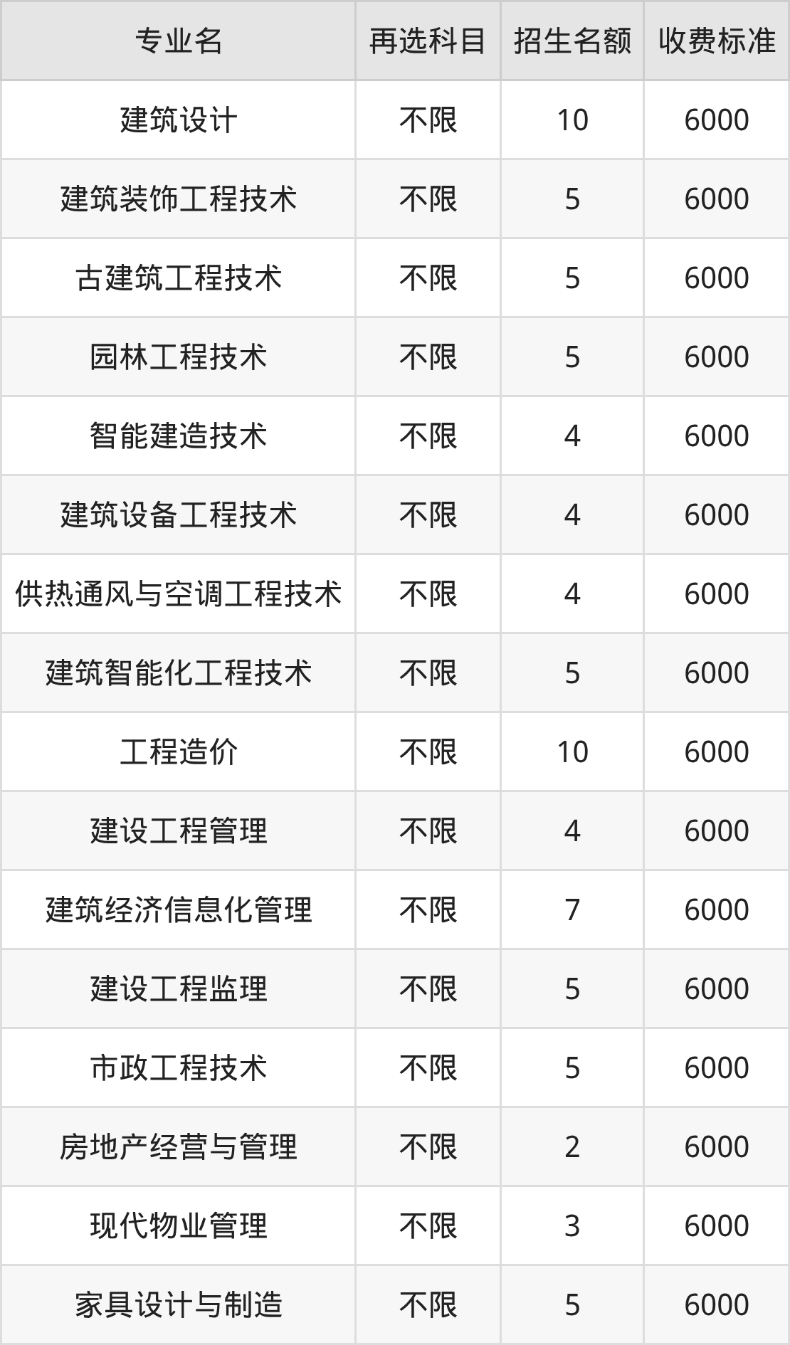 | 高职专科批 | 历史 | 建筑设计 | 10 |