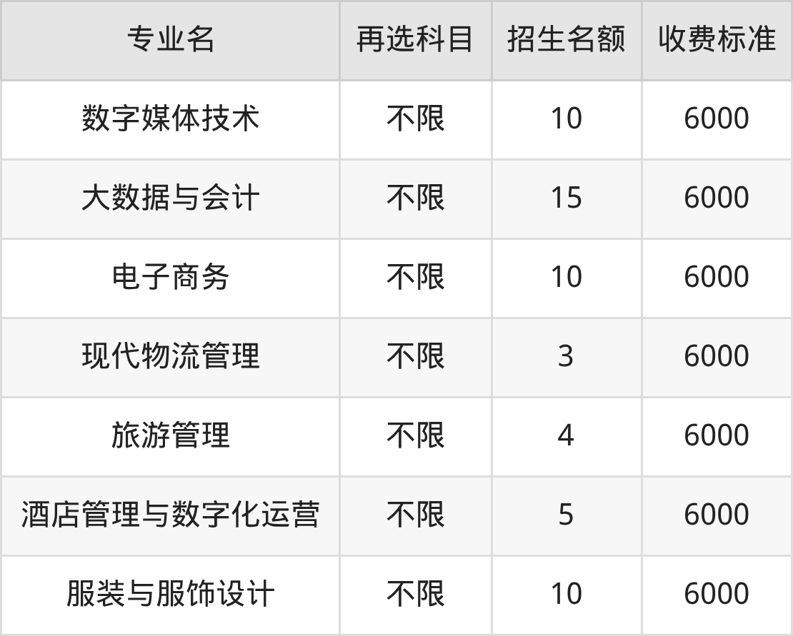 | 高职专科批 | 历史 | 数字媒体技术 | 10 |