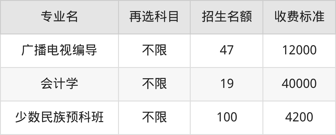 | 本科批 | 历史 | 少数民族预科班 | 100 |