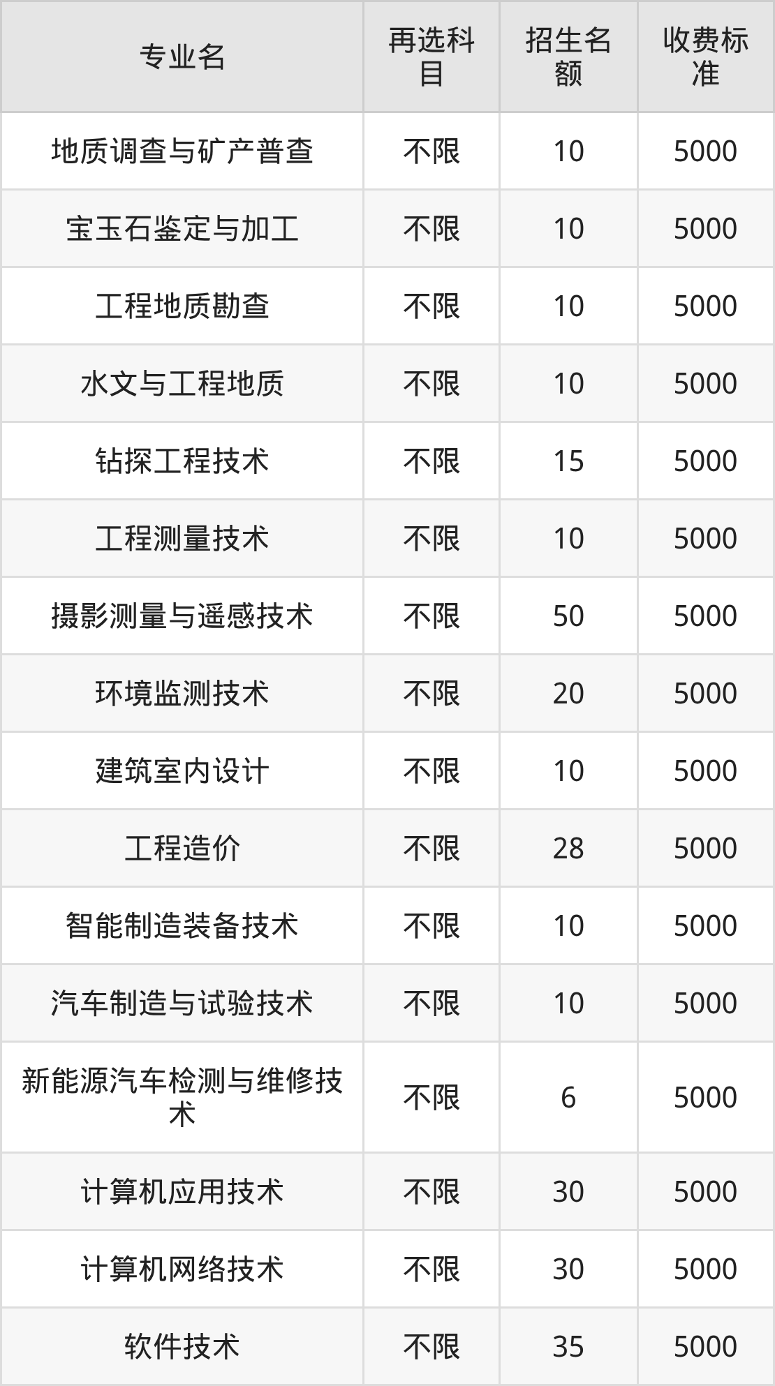 5.钻探工程技术:学费是5000元