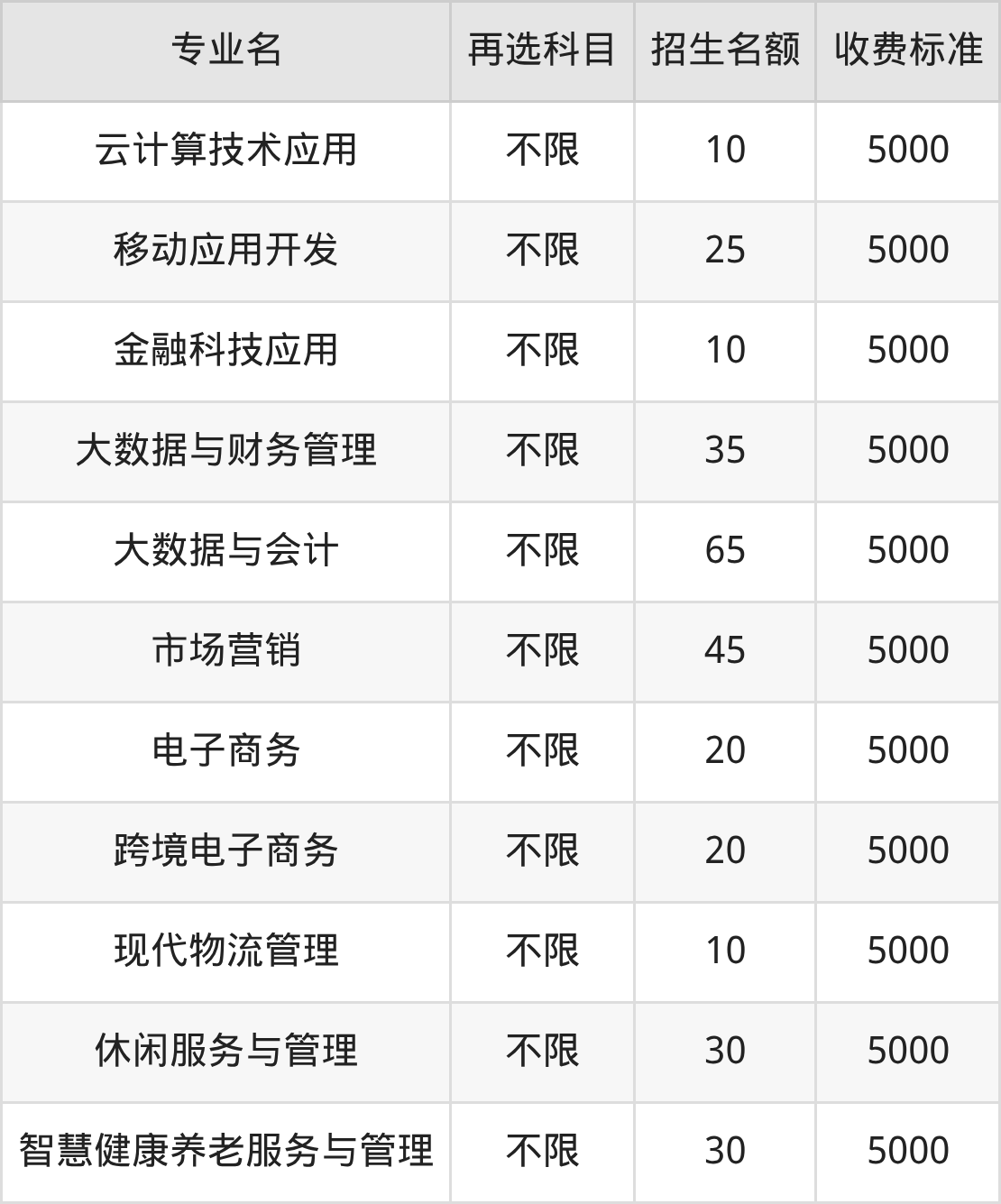河北资源环境职业技术学院在历史组专科批招生的各个专业,每年的学费是5000元。招生人数最多的专业是大数据与会计,2025年招65人,学费是5000元。
