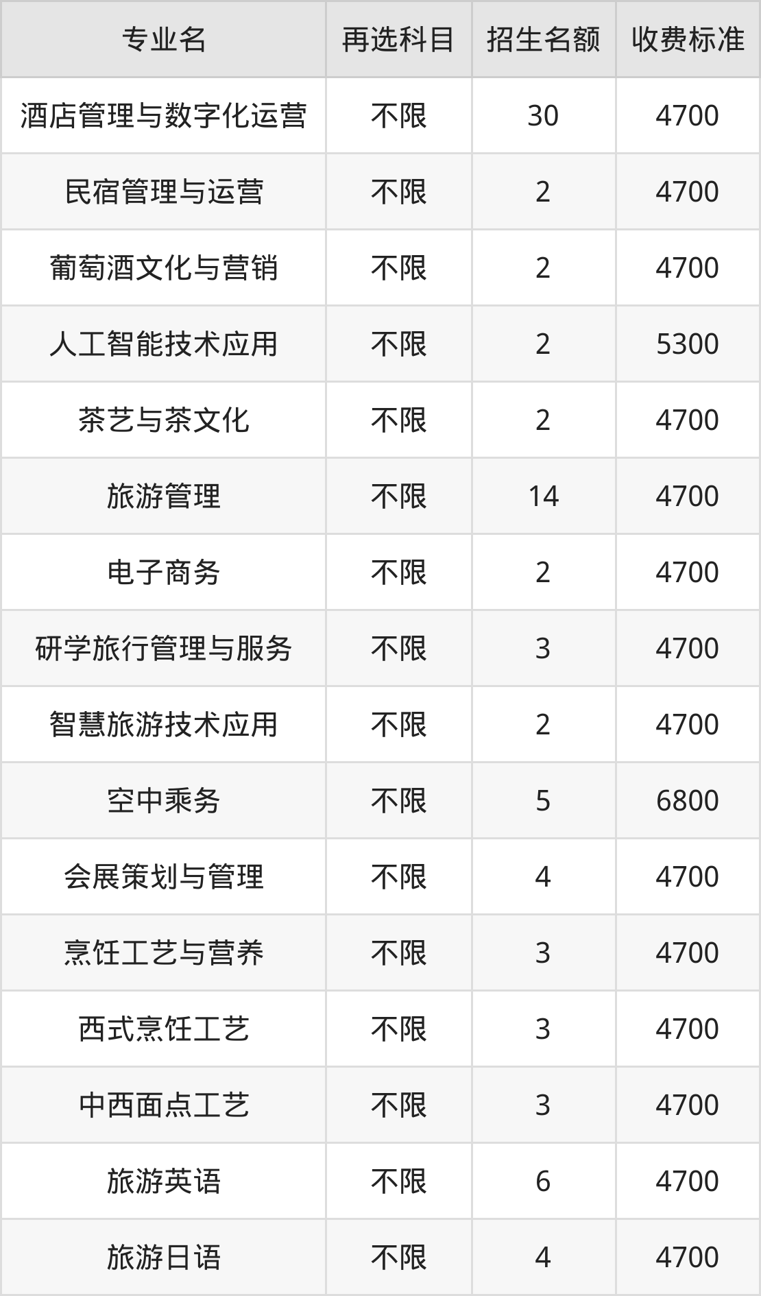 | 专科批 | 历史 | 酒店管理与数字化运营 | 30 |