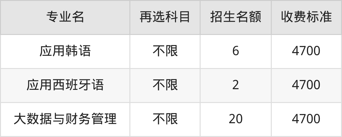 | 专科批 | 物理 | 应用韩语 | 2 |