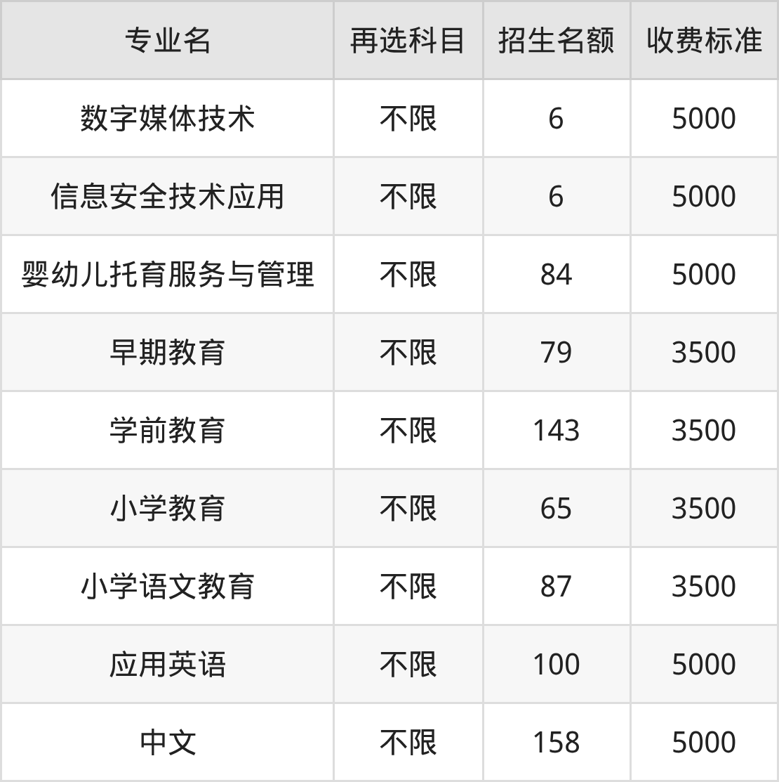 唐山幼儿师范高等专科学校在历史组专科批招生的各个专业,每年的学费是3500元-5000元。招生人数最多的专业是中文,2025年招158人,学费是5000元。