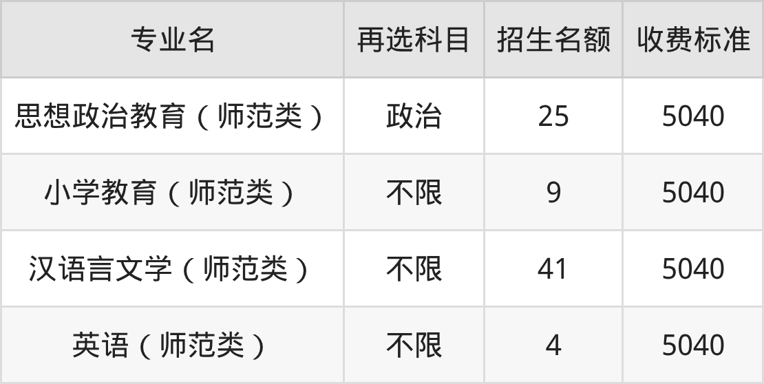 三明学院在历史组本科批招生的各个专业,每年的学费是5040元。招生人数最多的专业是汉语言文学,2025年招23人,学费是5040元。