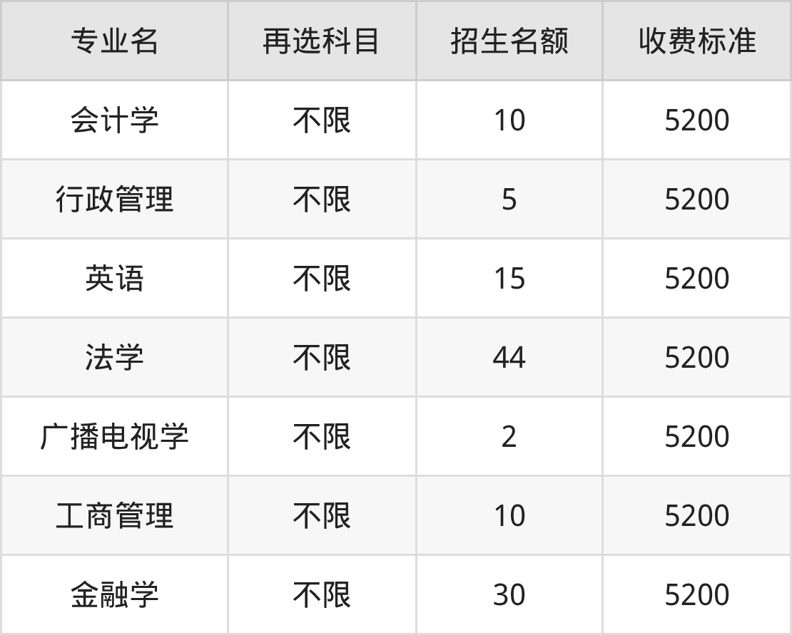 | 批次 | 首选 科目 | 专业名 | 招生 名额 |