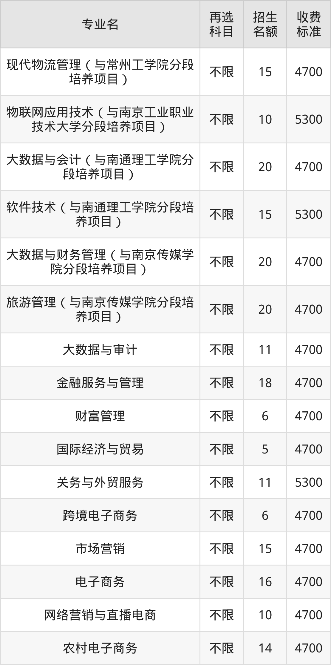 附江苏商贸职业学院在江苏省招生时,各档次学费对应的专业数量、招生总人数!