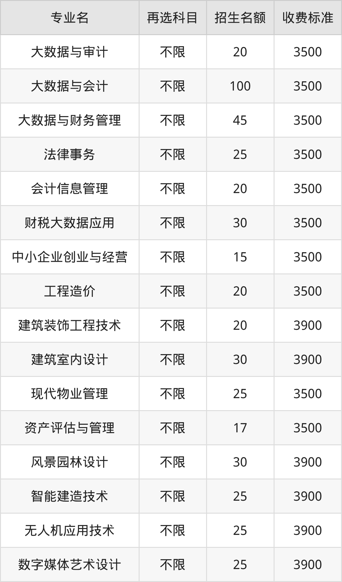 | 高职专科批 | 历史 | 工程造价 | 20 |