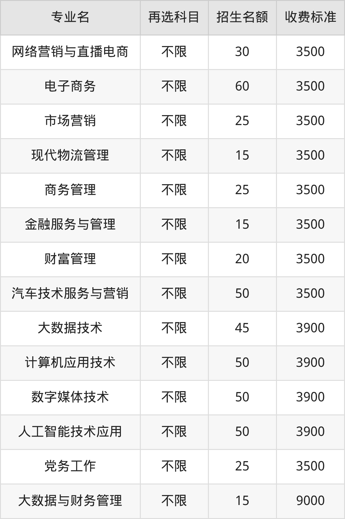 | 高职专科批 | 物理 | 商务管理 | 25 |