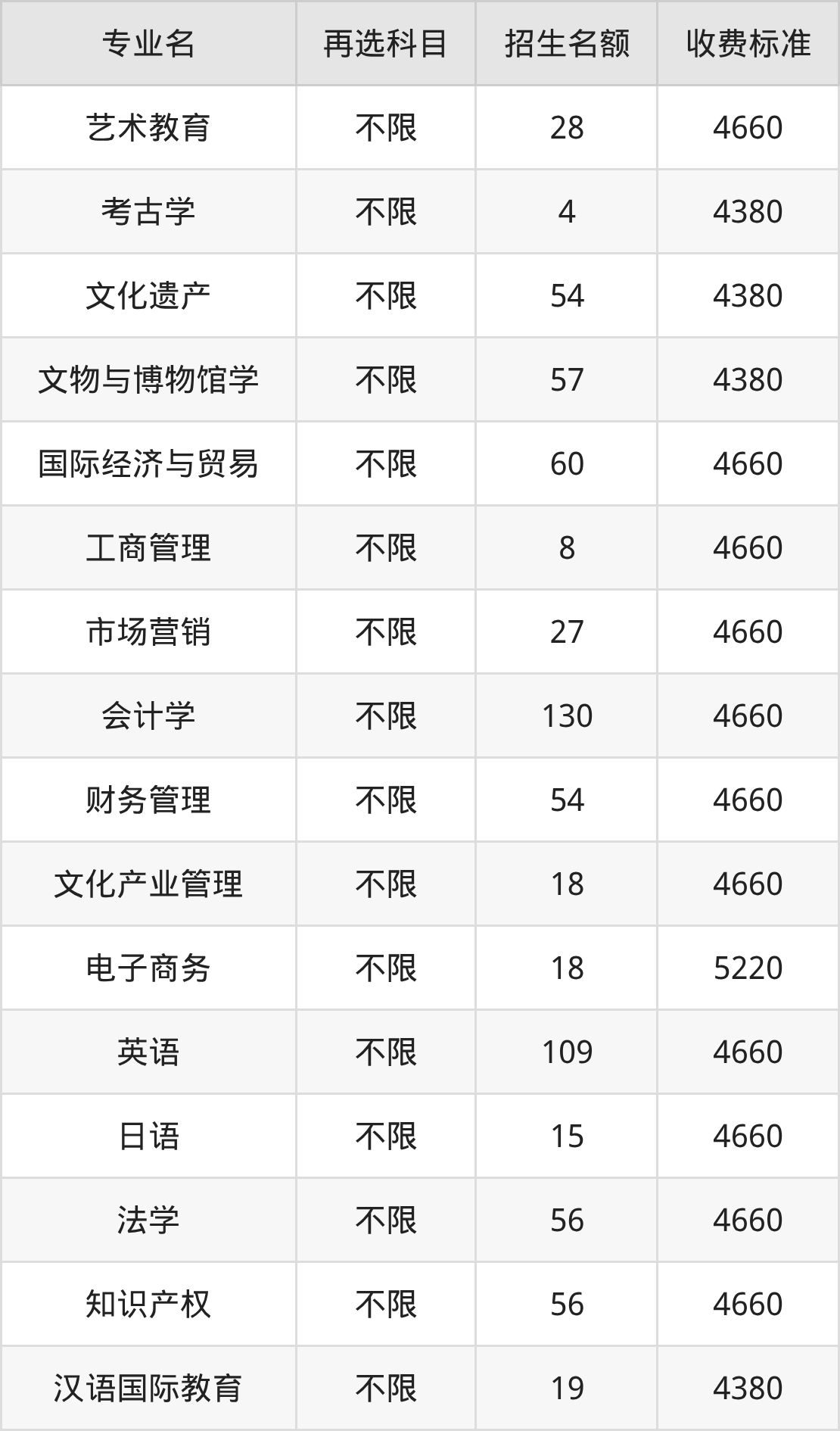 | 本科批 | 历史 | 文物与博物馆学 | 57 |