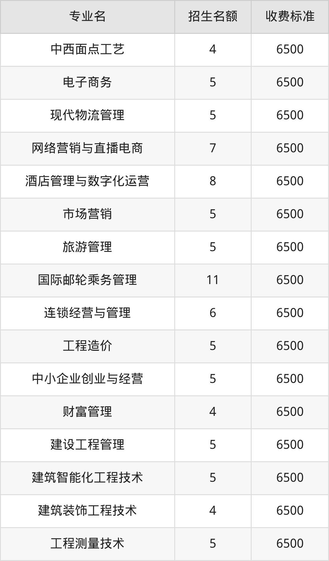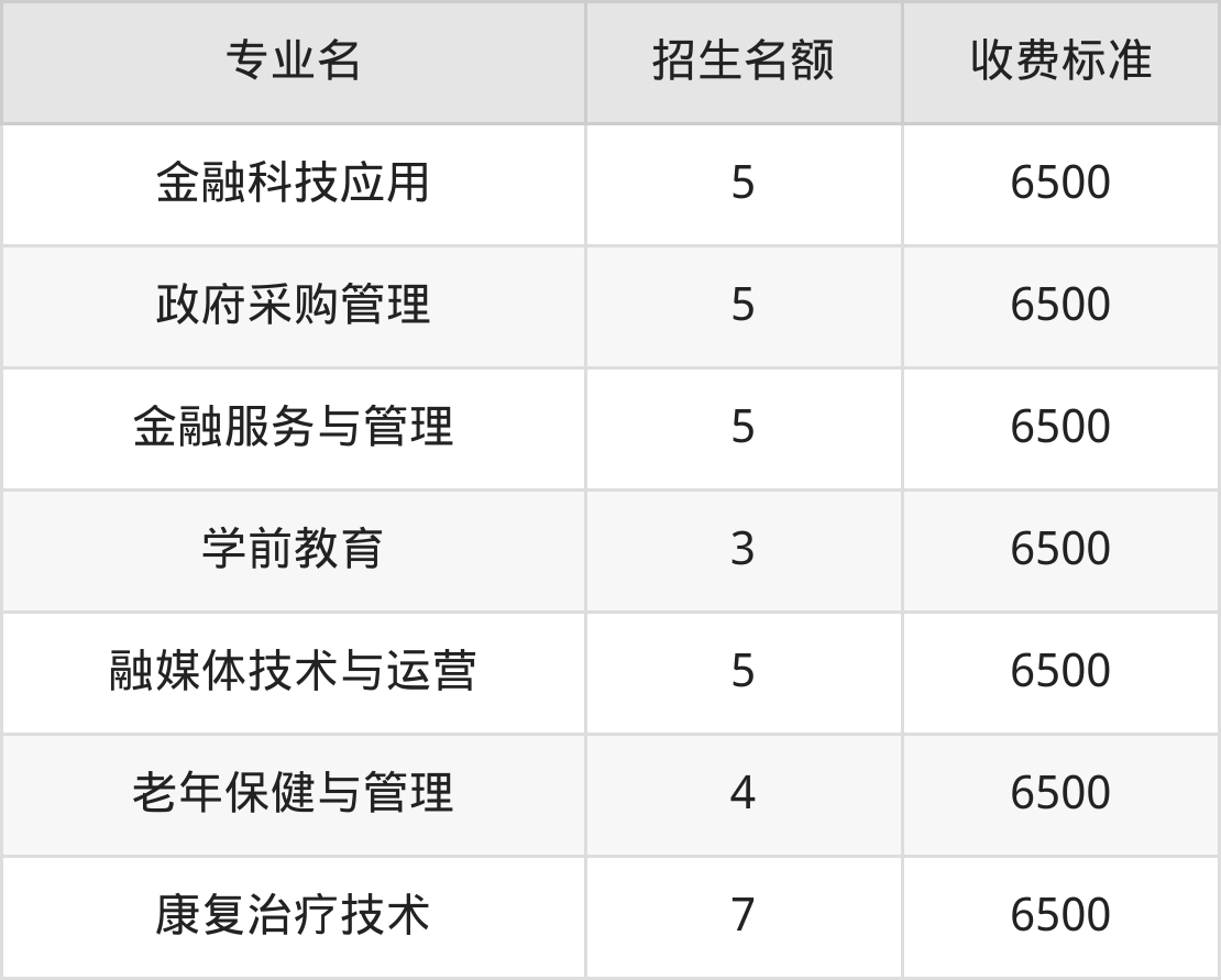陕西财经职业技术学院在文科高职专科批招生的各个专业,每年的学费是6500元。招生人数最多的专业是大数据与会计,2024年招17人,学费是6500元。