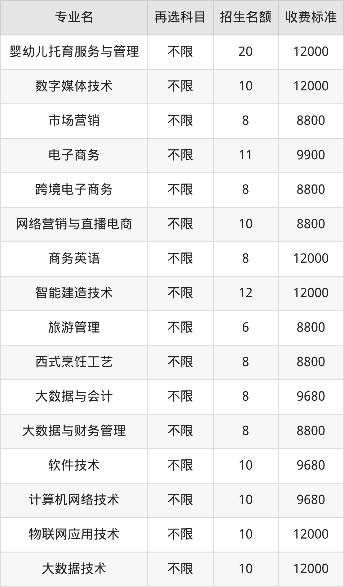 | 高职高专批 | 物理 | 大数据与财务管理 | 15 |