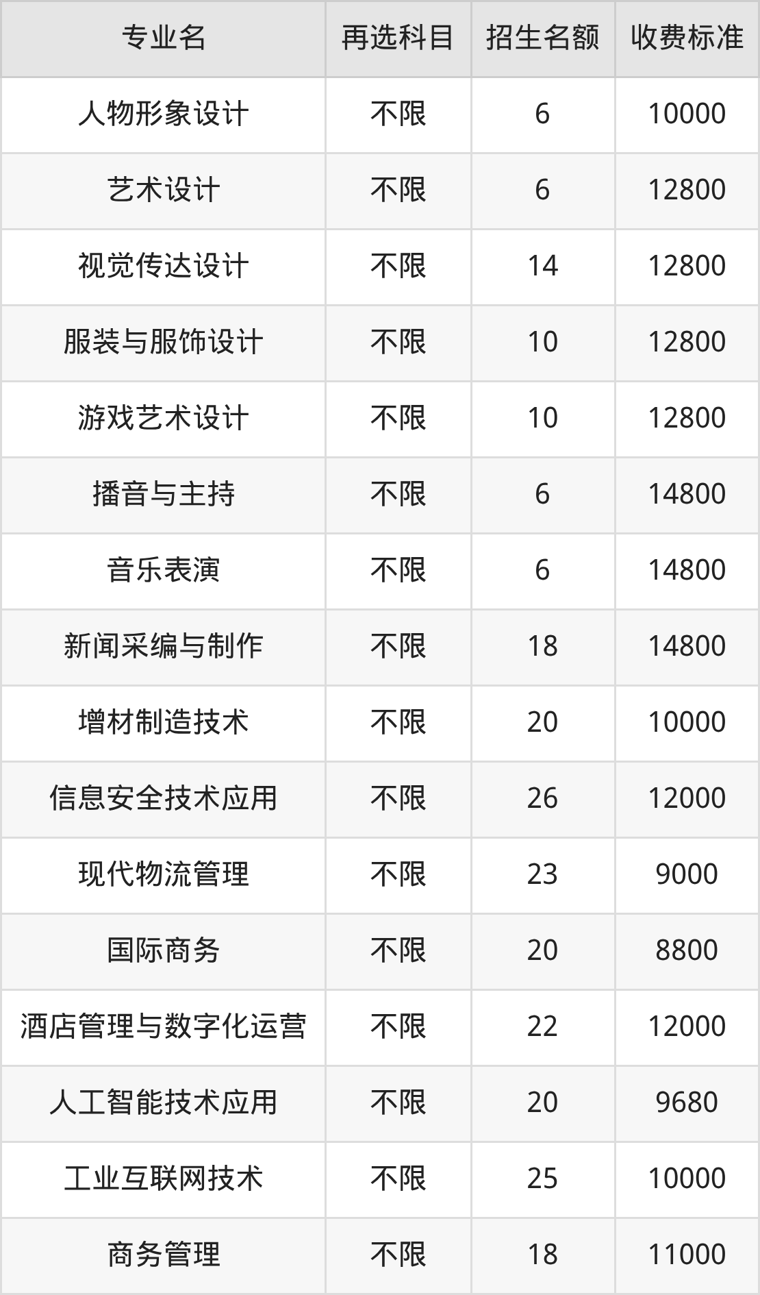 | 高职高专批 | 物理 | 旅游管理 | 15 |