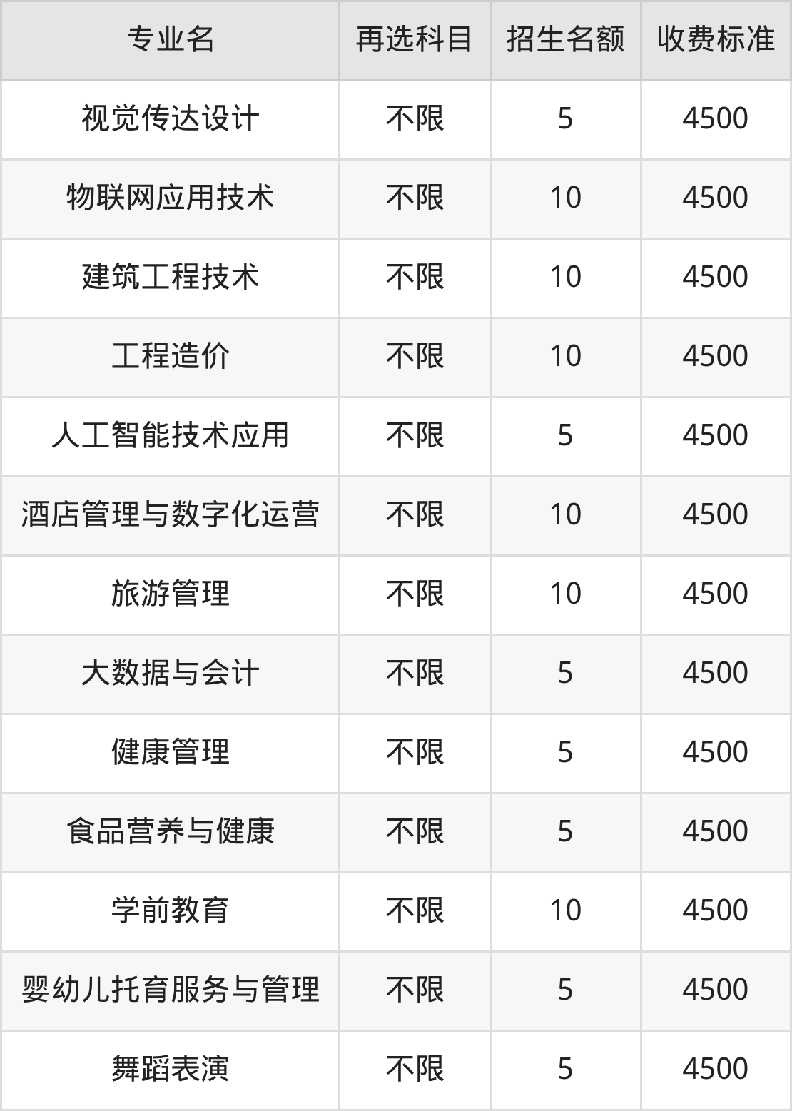 19.建筑工程技术:学费是4500元