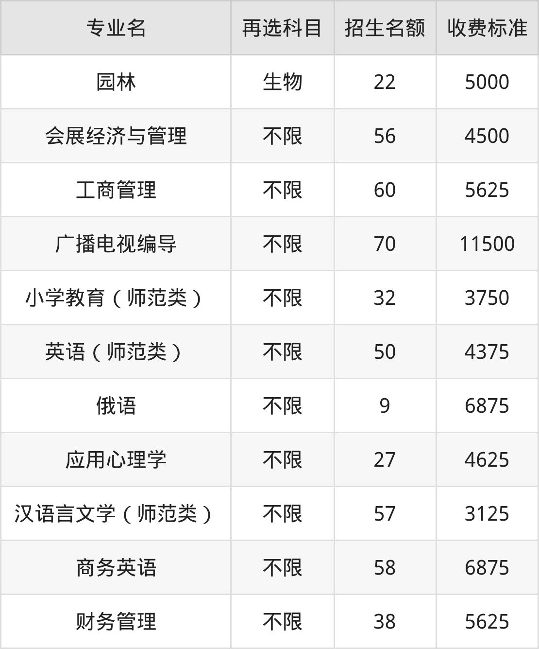 重庆文理学院在历史组本科批招生的各个专业,每年的学费是3125元-11500元。招生人数最多的专业是广播电视编导,2025年招70人,学费是11500元。