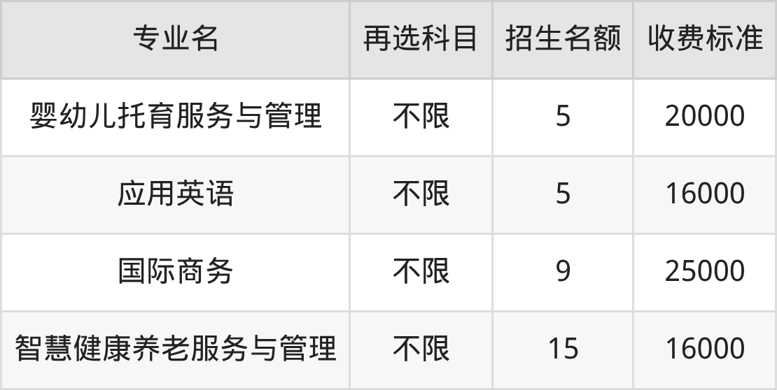 | 专科批 | 历史 | 酒店管理与数字化运营 | 3 |