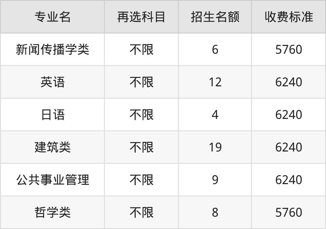 | 批次 | 首选 科目 | 专业名 | 招生 名额 |