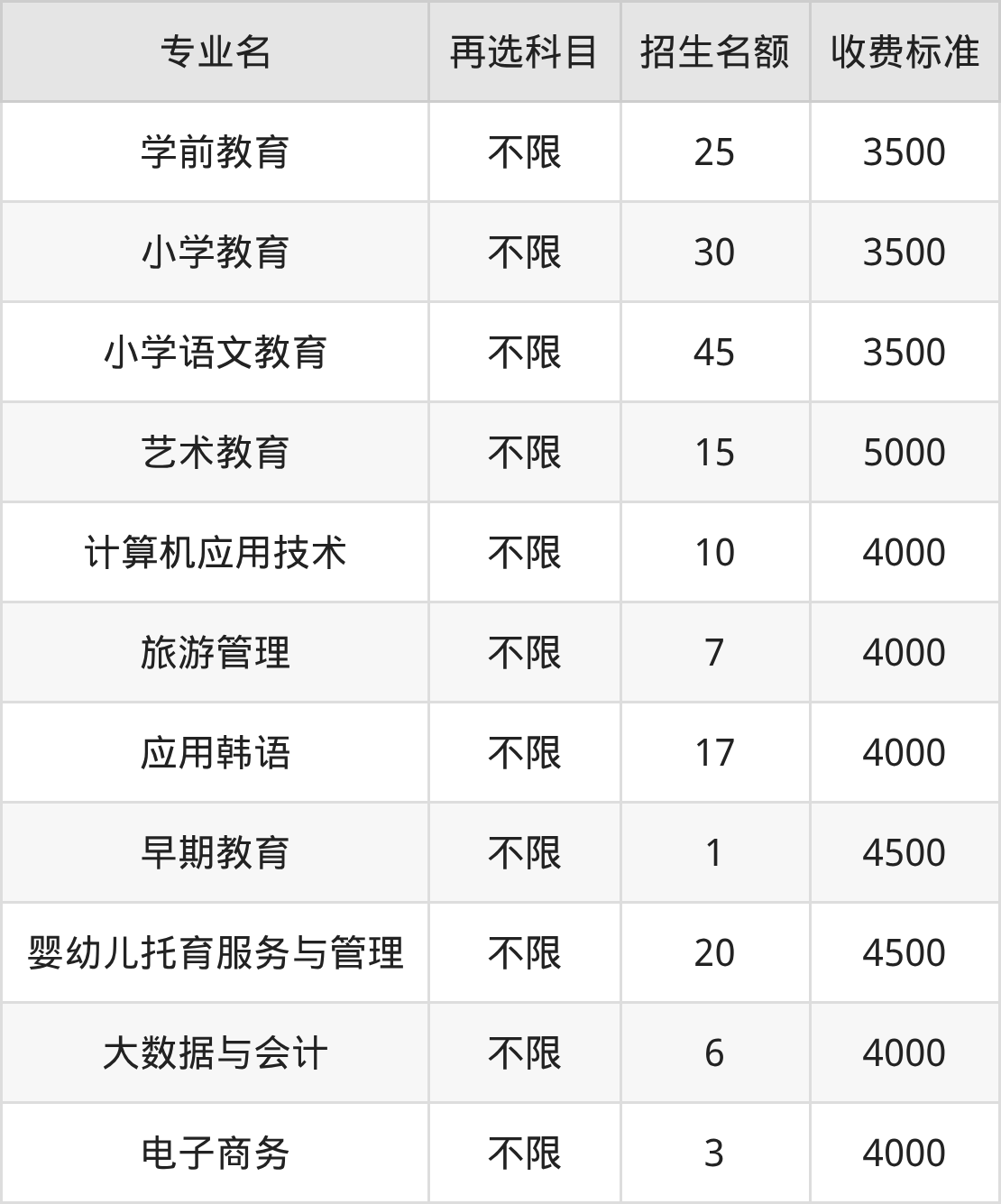 | 高职专科批 | 物理 | 小学教育 | 35 |