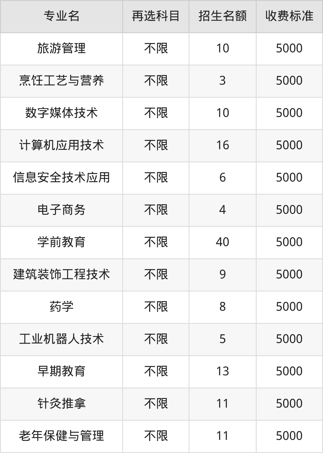 呼伦贝尔职业技术学院在历史组高职专科批招生的各个专业,每年的学费是5000元。招生人数最多的专业是学前教育,2025年招40人,学费是5000元。