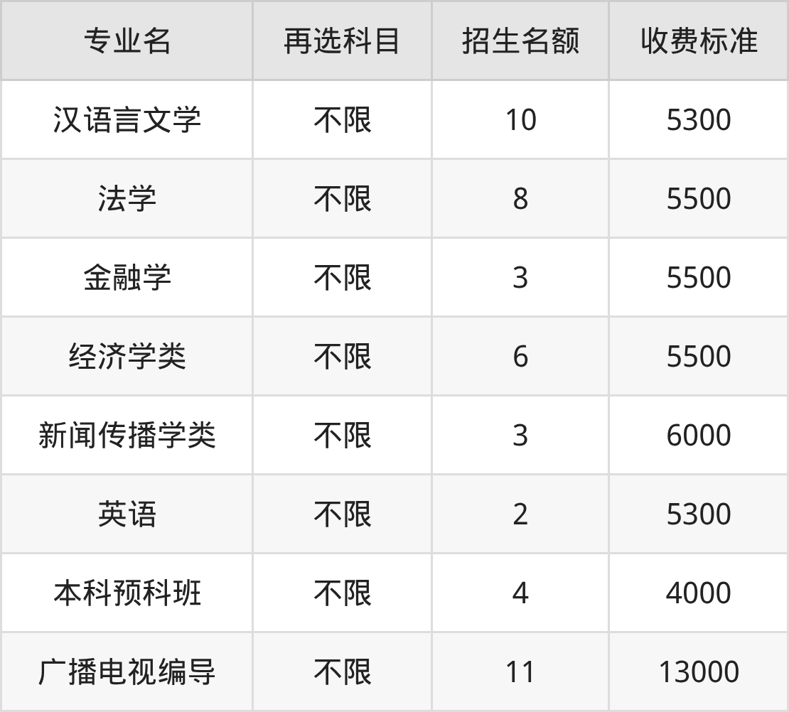 | 本科批 | 历史 | 广播电视编导 | 11 |