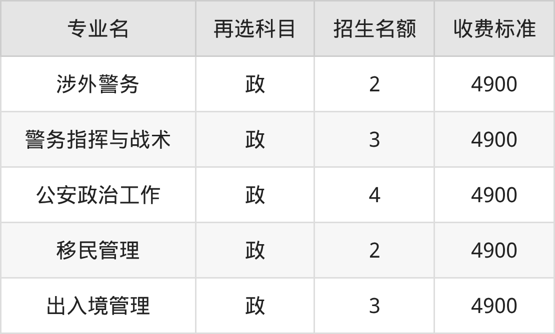 一、中国人民警察大学各专业收费标准