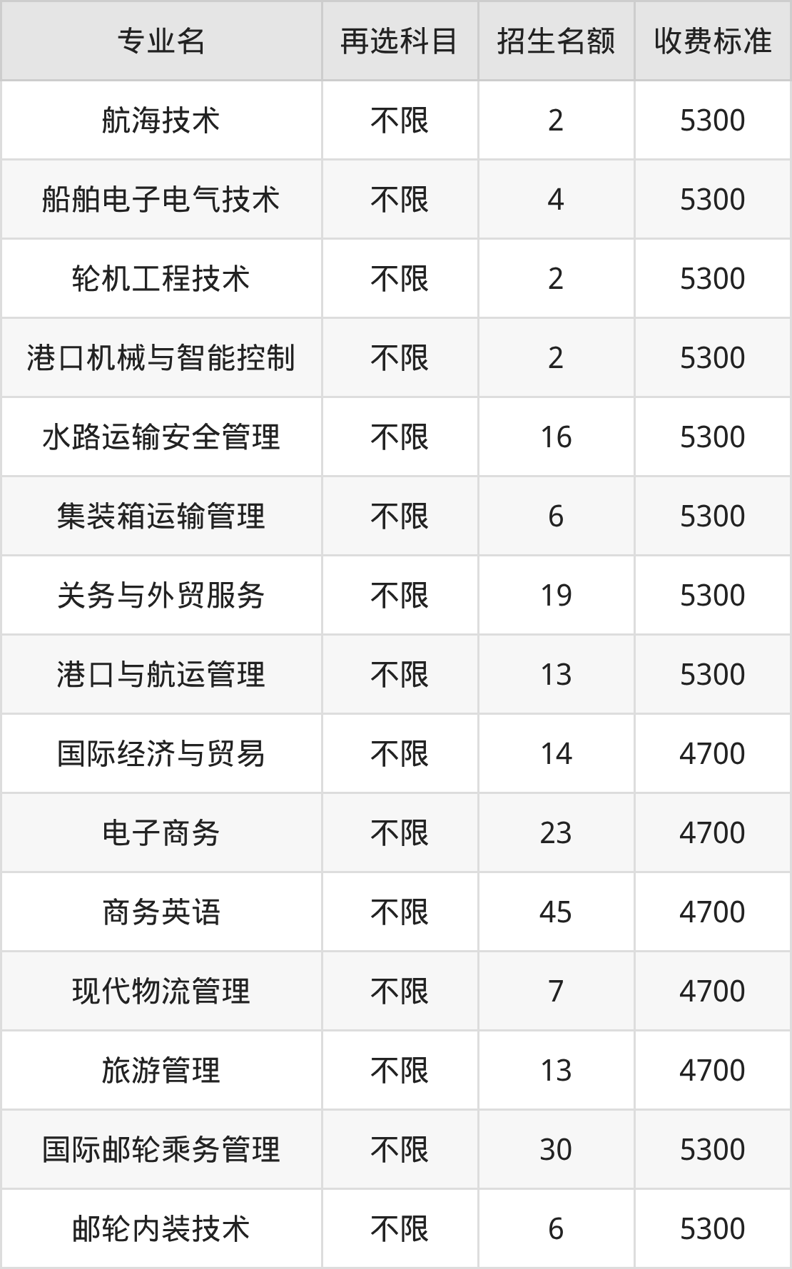 | 专科批 | 历史 | 港口与航运管理 | 13 |