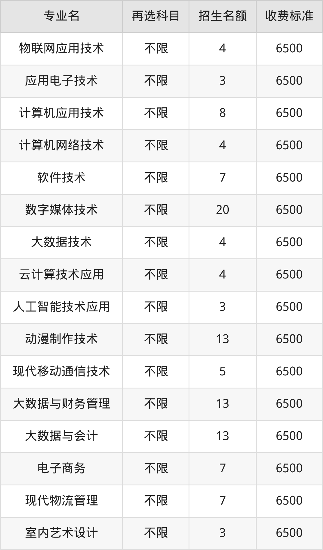 | 高职专科批 | 物理 | 计算机应用技术 | 10 |