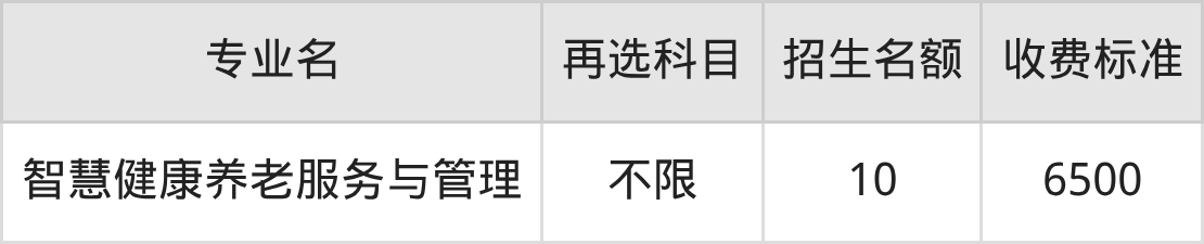 | 高职专科批 | 历史 | 智慧健康养老服务与管理 | 10 |