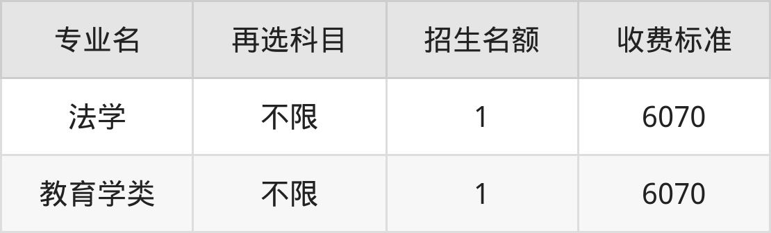 | 批次 | 首选 科目 | 专业名 | 招生 名额 |