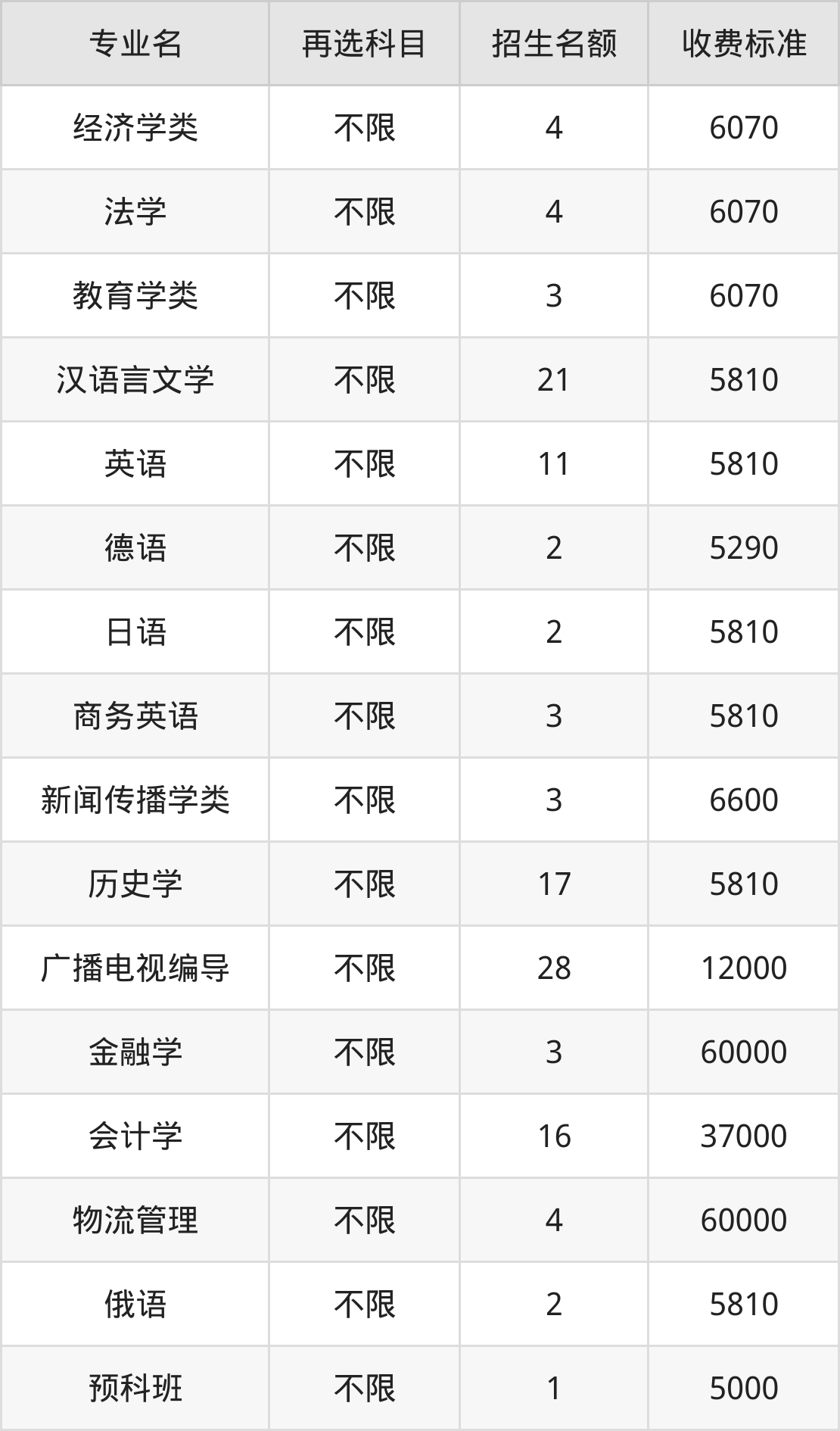 东北师范大学在历史组本科批招生的各个专业,每年的学费是5000元-60000元。招生人数最多的专业是广播电视编导,2024年招28人,学费是12000元。