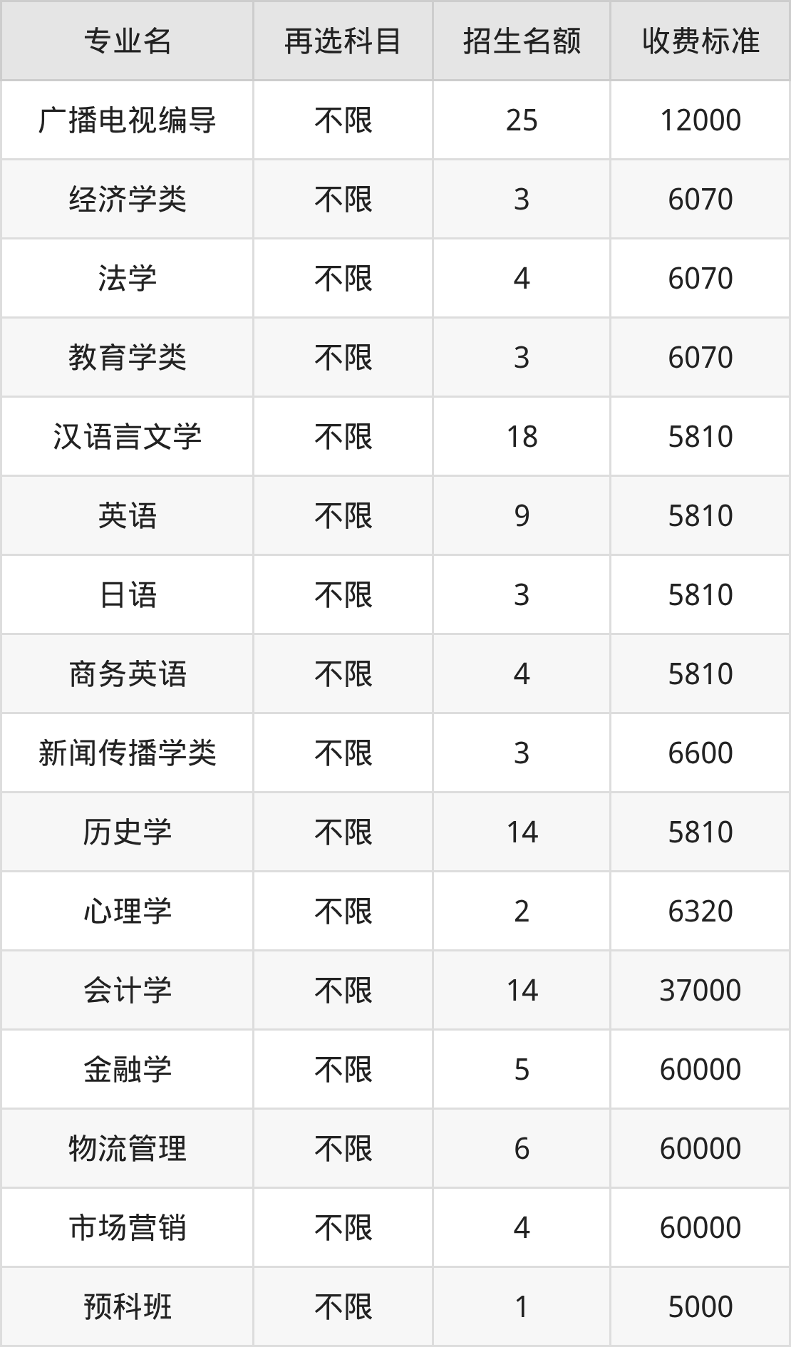 | 本科批 | 历史 | 金融学 | 5 |