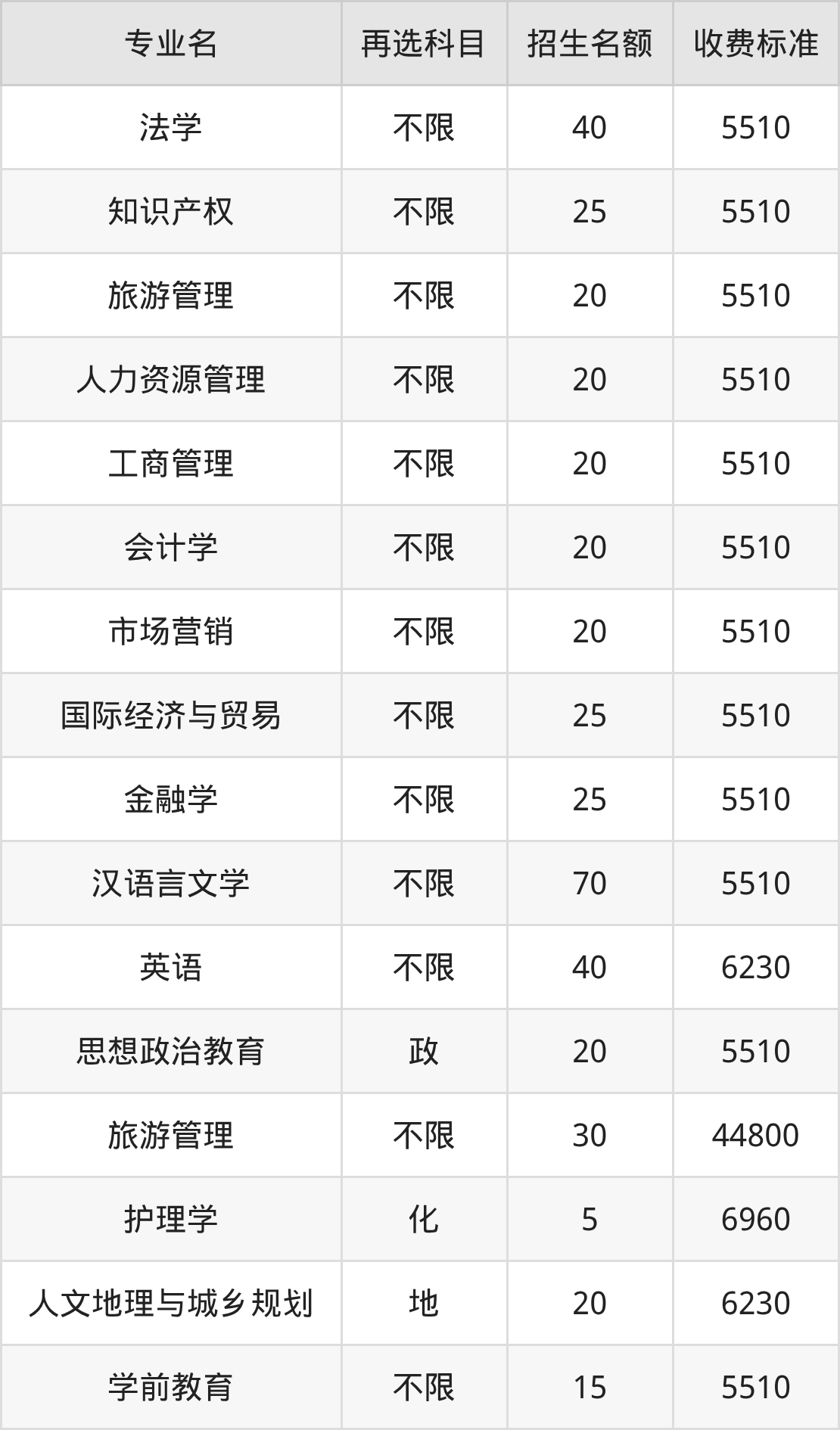 15.法学:学费是5510元
