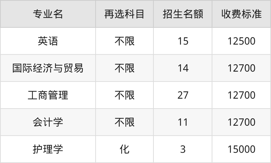 南华大学船山学院在历史组本科批招生的各个专业,每年的学费是12500元-15000元。招生人数最多的专业是工商管理,2025年招27人,学费是12700元。