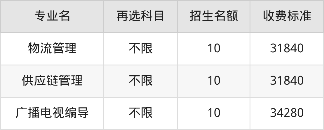 | 本科批 | 历史 | 供应链管理 | 10 |