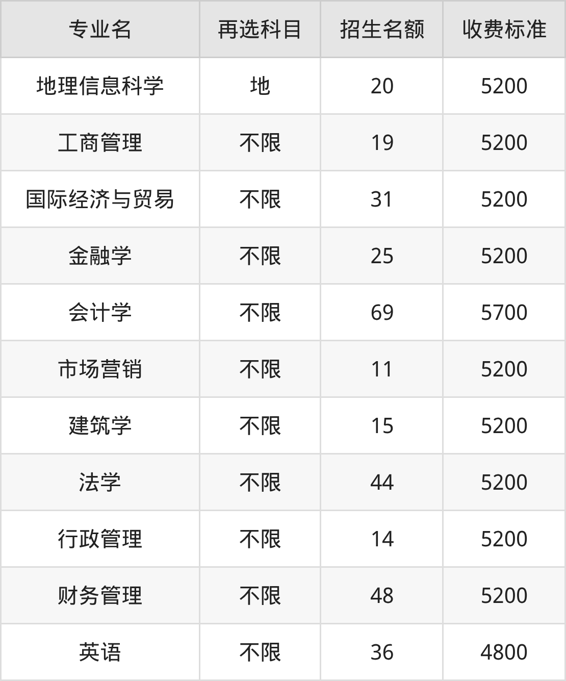 | 批次 | 首选 科目 | 专业名 | 招生 名额 |