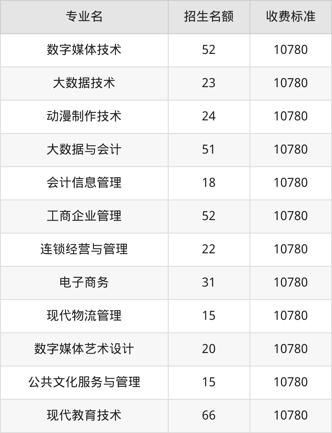 西安高新科技职业学院在文科高职专科批招生的各个专业,每年的学费是10780元。招生人数最多的专业是机电一体化技术,2024年招70人,学费是10780元。