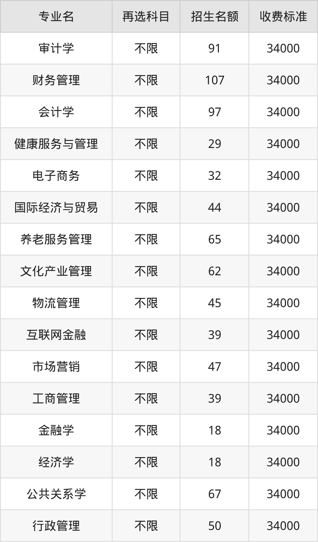 | 本科批 | 物理 | 国际经济与贸易 | 20 |