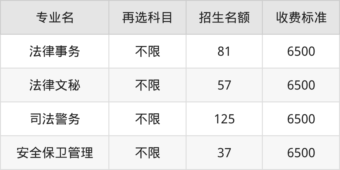 | 高职专科批 | 历史 | 司法警务 | 125 |