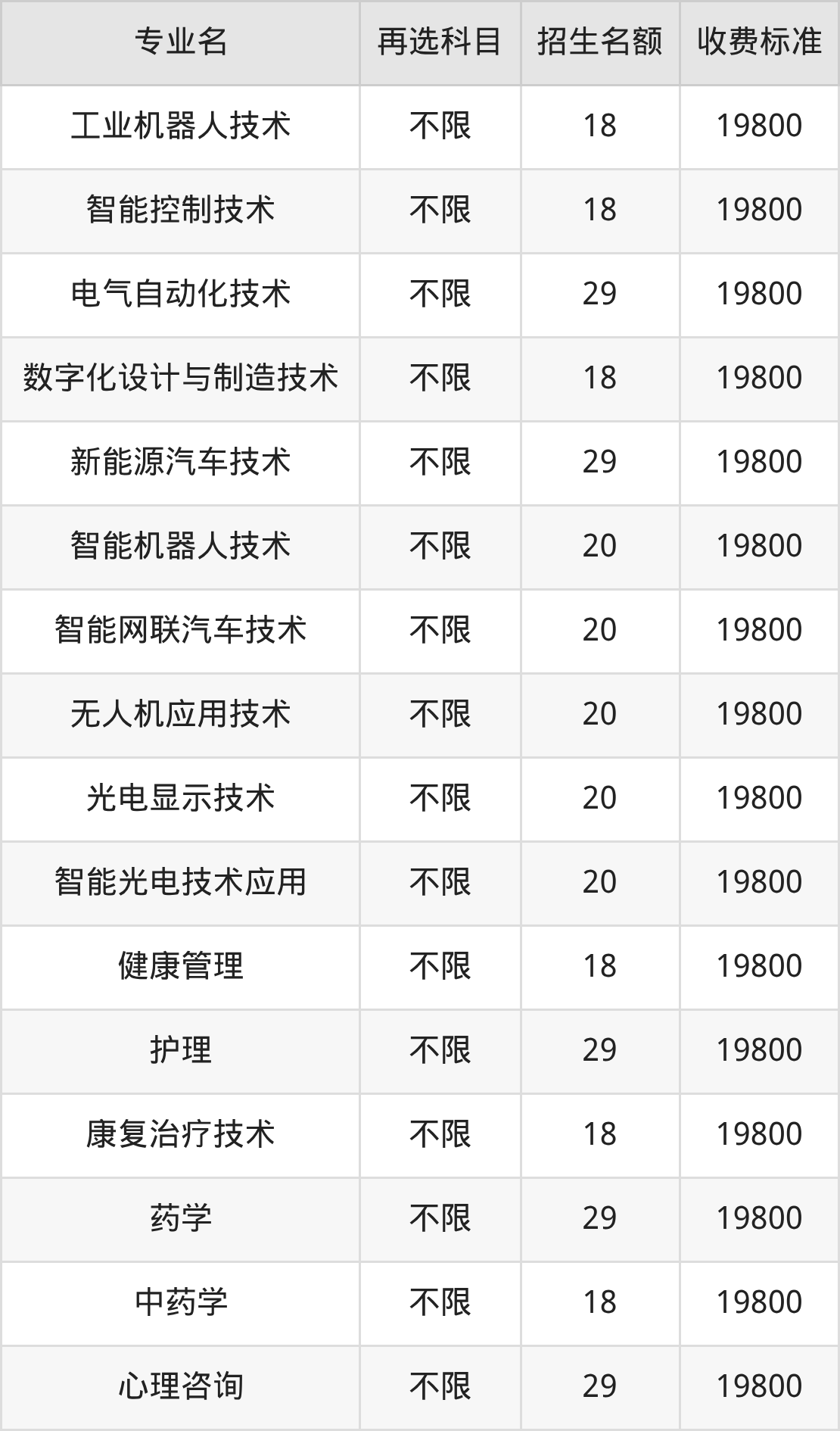 | 专科高职批 | 历史 | 机电一体化技术 | 29 |