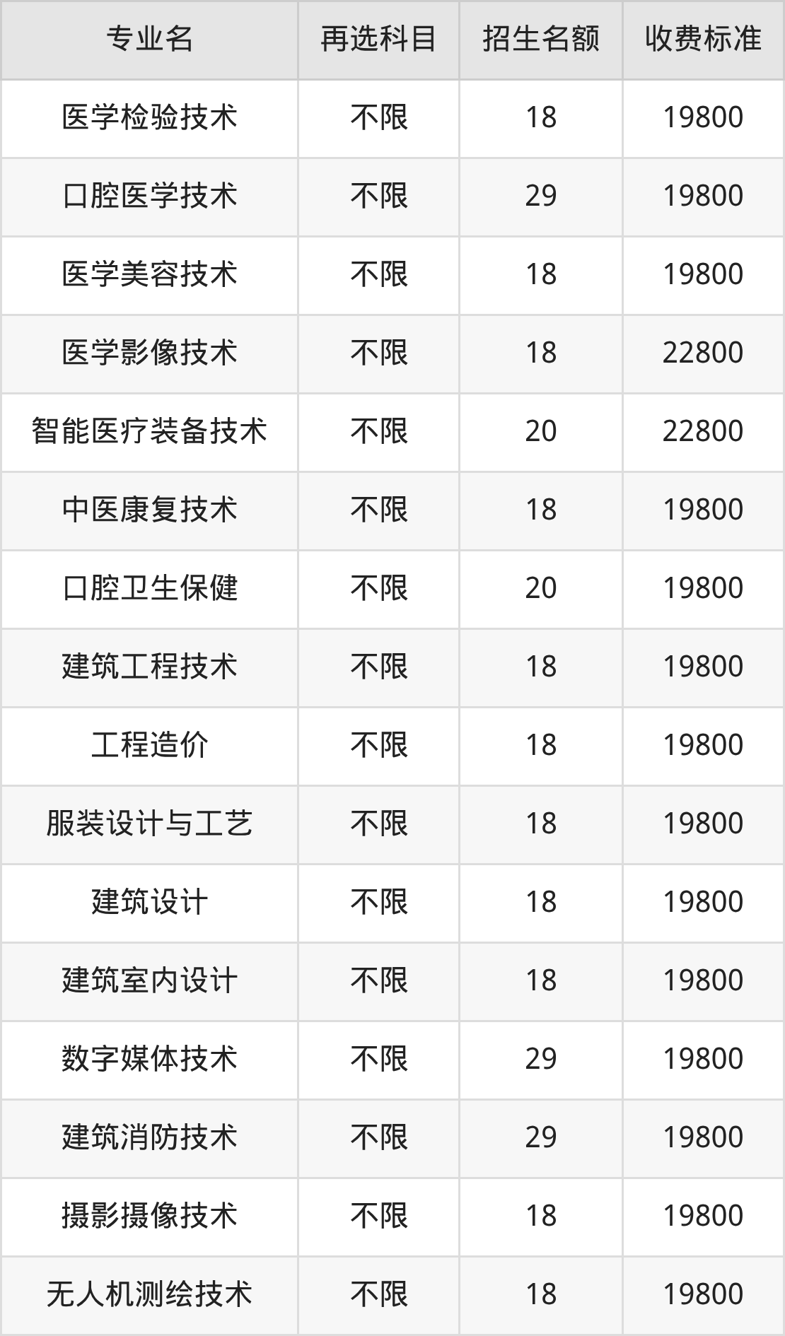 | 专科高职批 | 历史 | 医学美容技术 | 18 |