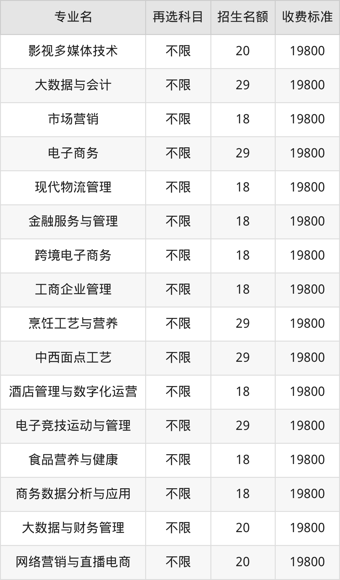| 专科高职批 | 物理 | 工商企业管理 | 30 |