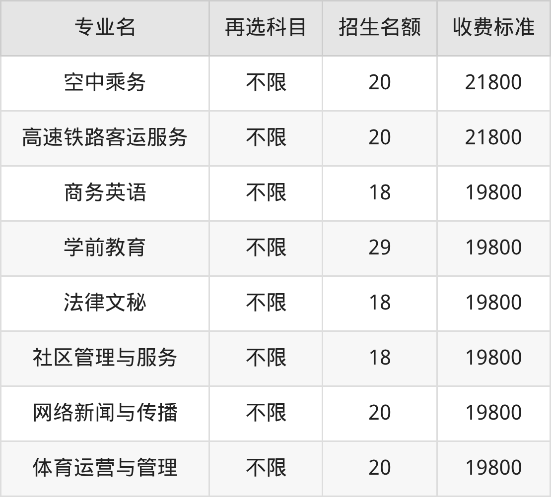 | 专科高职批 | 历史 | 体育运营与管理 | 20 |