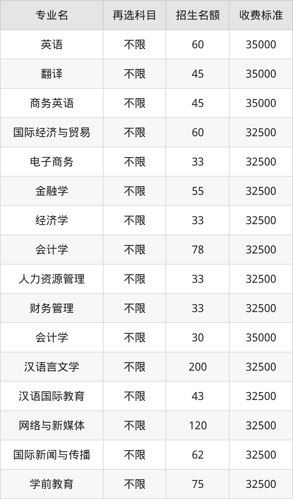 4.国际经济与贸易:学费是32500元